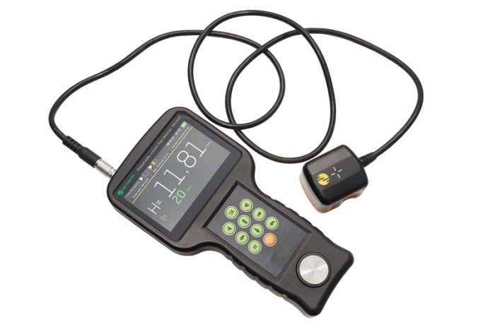 - Прибор имеет яркий дисплей, на котором отображаются измеренная толщина, а также А-скан и С-скан