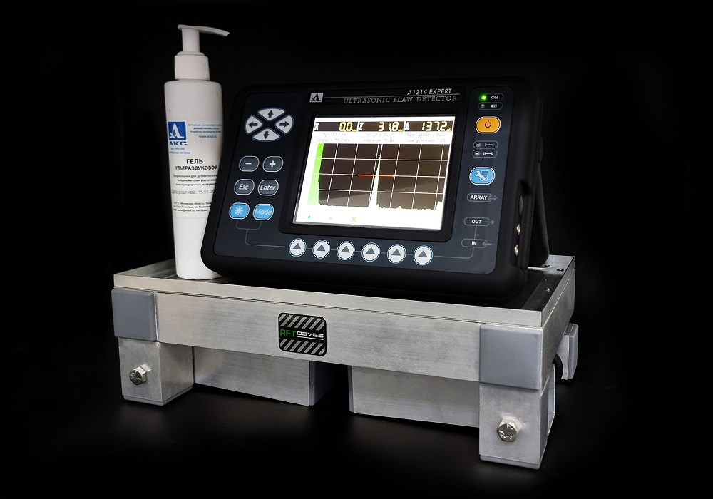 Стол служит для работ на промышленных площадках, может быть установлен на стенку резервуара или трубу большого диаметра. Надежно удерживает оборудование, такое как дефектоскоп или другие принадлежности, освобождая руки оператора.